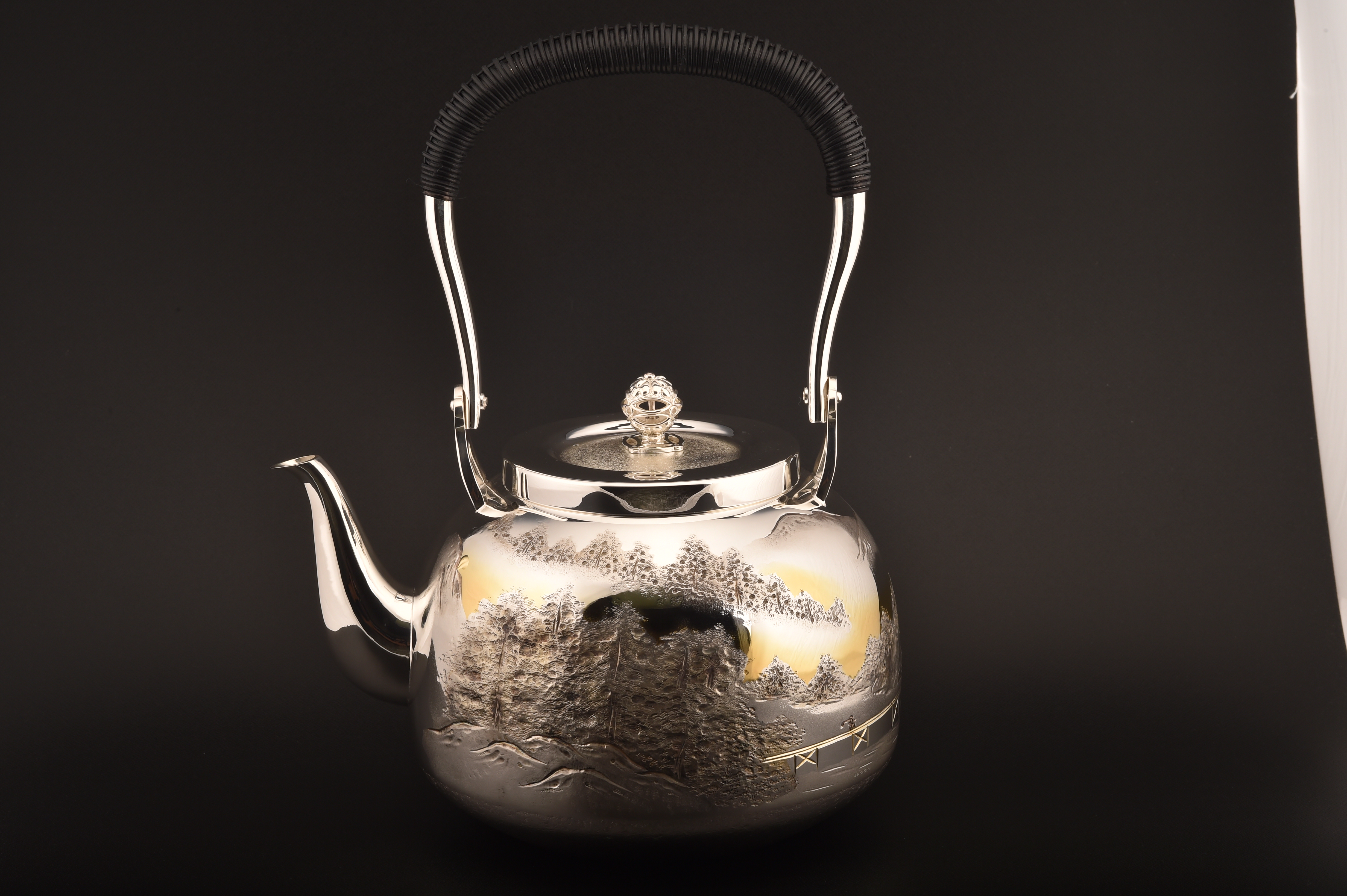 純銀製 湯沸 5寸 山水